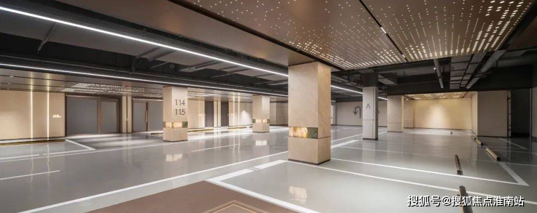 ,地面采用环氧磨石、柱面采用石材,顶部巧妙融入光柱和星空顶,完全被尊贵感环绕。